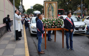 Al término de la conferencia se tuvo un momento de convivencia fraterna, para dar paso a la Santa Misa por las familias, presidida por nuestro Sr. Párroco Castrense Don Jorge Reyes de la Riva, como cada domingo al concluir la celebración se tuvo la entrega recepción de la imagen de la Sagrada Familia peregrina.