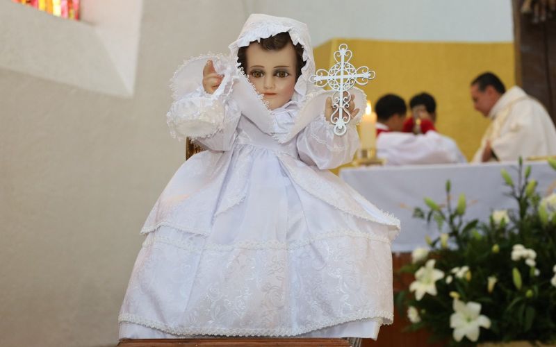 Un Capitán acompañado de su esposa y de sus dos hijas e hijo, caminaron por el pasillo procesional llevando entre sus manos la imagen del Niño Jesús, misma que fue entronizada en compañía de nuestro Párroco Castrense Don Jorge Reyes de la Riva.